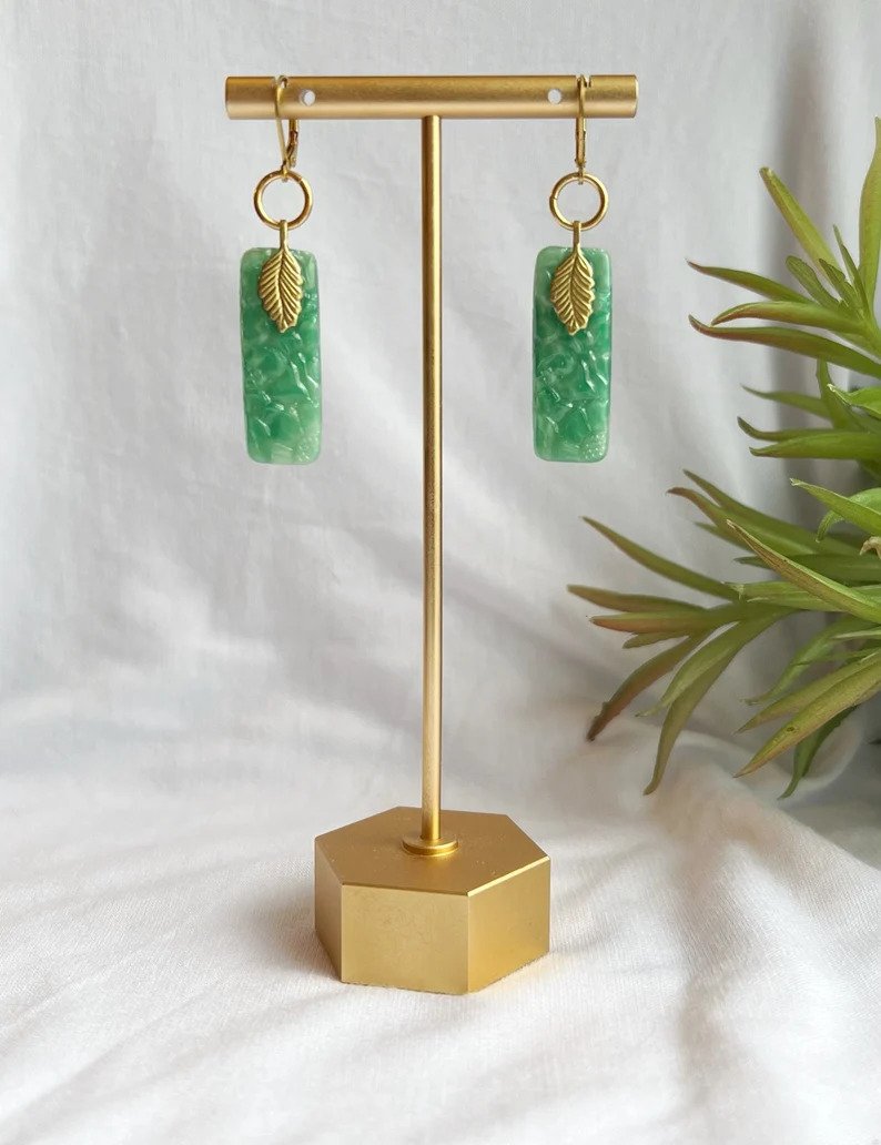 Be the first to review “JADE GREEN PRESSED vintage glass earrings”